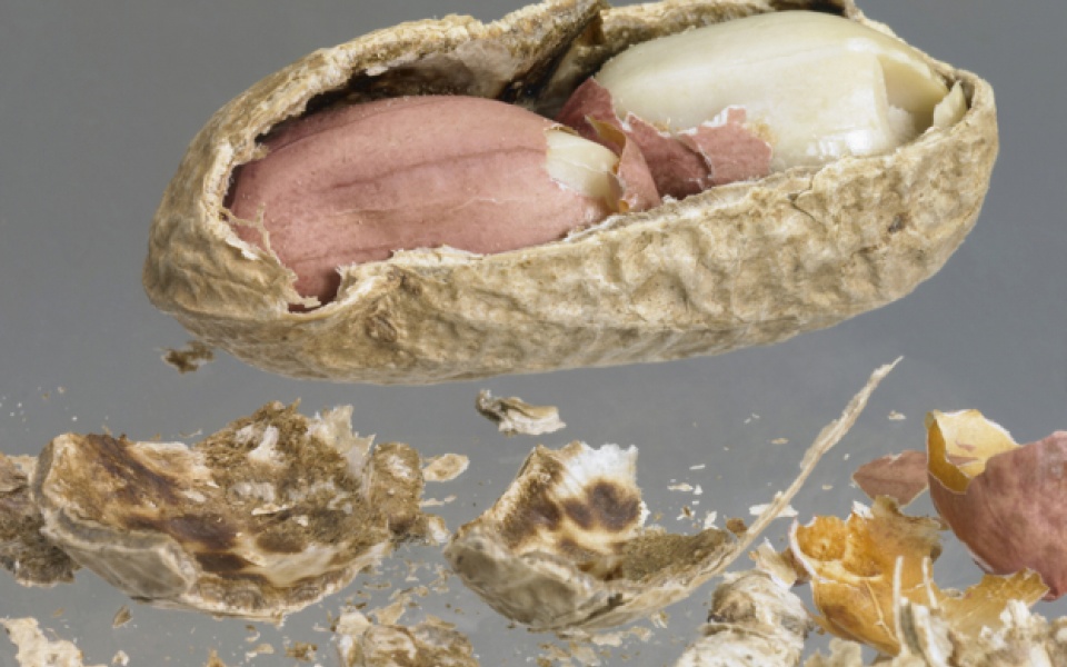 A legume from a plant that bears seeds in pods that grow underground. Peanuts often are thought of as a nut. The oval, ivory-colored seeds are covered with a papery skin and encased in a fragile, tan pod. Peanuts have a buttery, nutty flavor when roasted. They are the main ingredient of peanut butter.