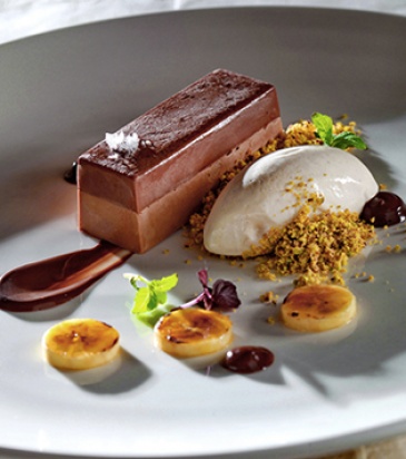 3250.jpg Μους από σοκολάτα γάλακτος, ζελέ σοκολάτα, crumble από φιστίκι Αιγίνης και παγωτό μπανάνα ΔΕΣ ΤΗ ΣΥΝΤΑΓΗ