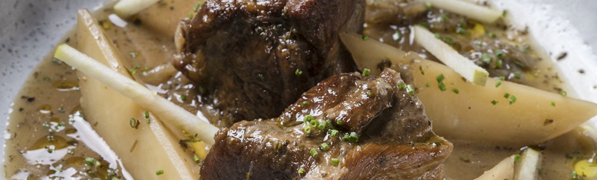 Πετάμε τα λίπη από την κατσαρόλα, την επαναφέρουμε στη φωτιά και προσθέτουμε το υπόλοιπο ελαιόλαδο. Προσθέτουμε τα κρεμμύδια, αλατίζουμε και σοτάρουμε, μέχρι να αποκτήσουν έντονο χρώμα και να μαλακώσουν.