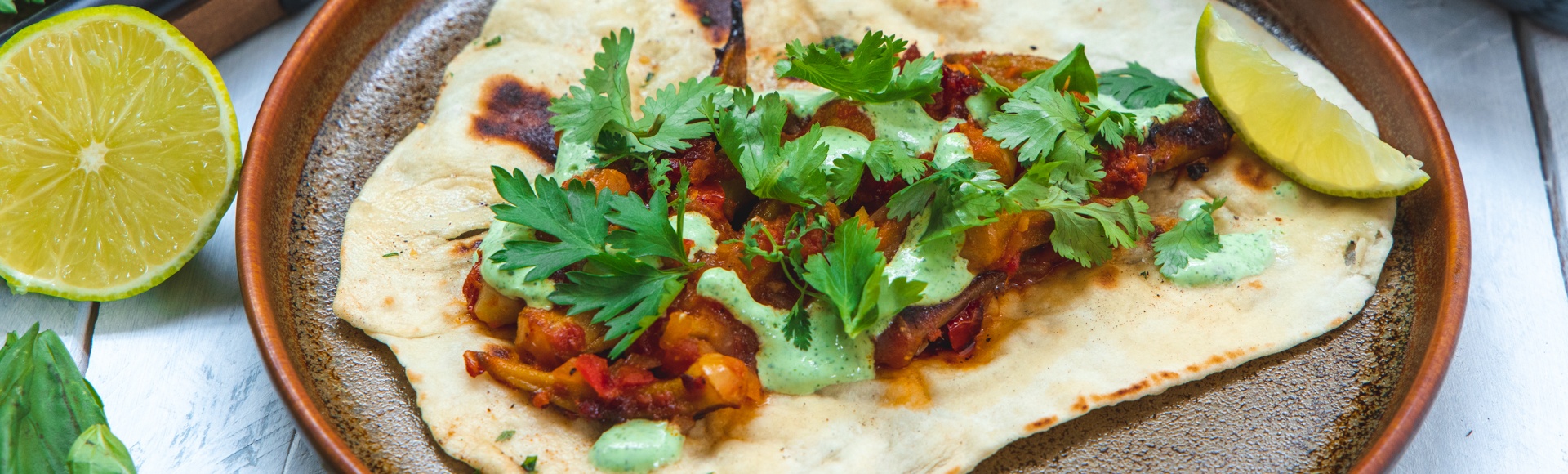Στο πάγκο εργασίας απλώνουμε ένα πιτάκι naan.