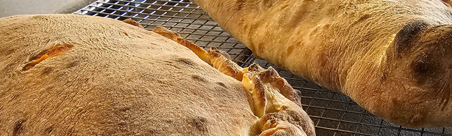 Με την κενή επιφάνεια της ζύμης καλύπτουμε την επιφάνεια με τα υλικά, δημιουργώντας ένα μισοφέγγαρο και κλείνουμε πιέζοντας περιμετρικά τις άκρες με τα δάχτυλά μας.